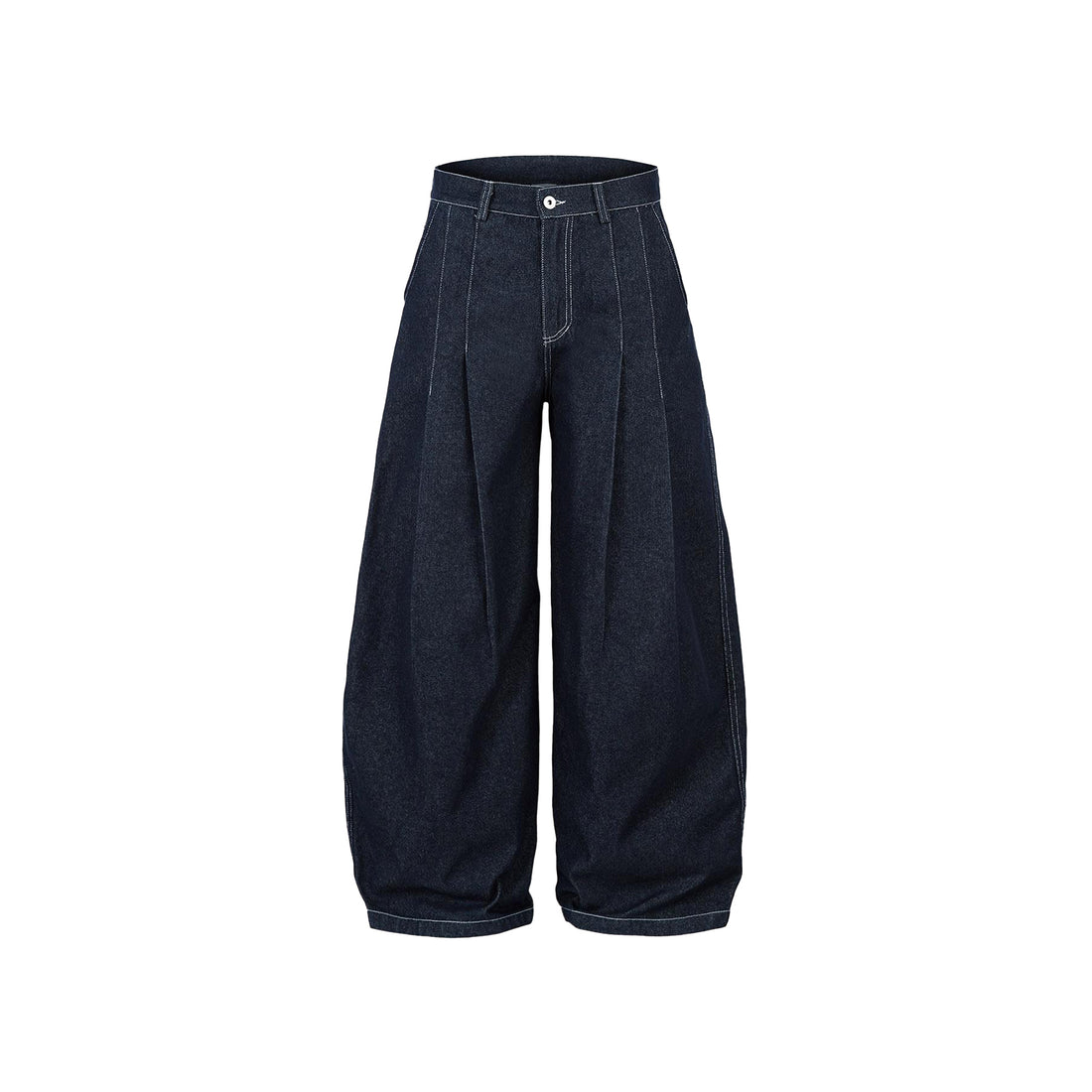 Deconstructed Contrast Stitching Pleated Baggy Barrel Jeans