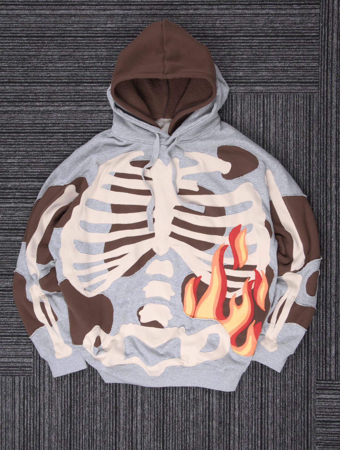 Each re-make is hand-assembled with layered fabrics, bold appliqués, and custom cuts that turn simple pieces into standout artwear.