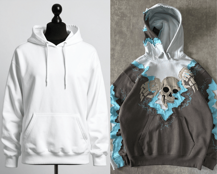Watch the transformation as we take a plain garment and reimagine it into a unique piece of wearable art. The process begins with meticulous stitching, where skilled hands guide the fabric under the needle, carefully adding vibrant details and textures. Each stitch is placed with purpose, creating a beautiful, one-of-a-kind design. From fabric manipulation to the final touches, this is how we make every piece truly special — with love, precision, and craftsmanship.