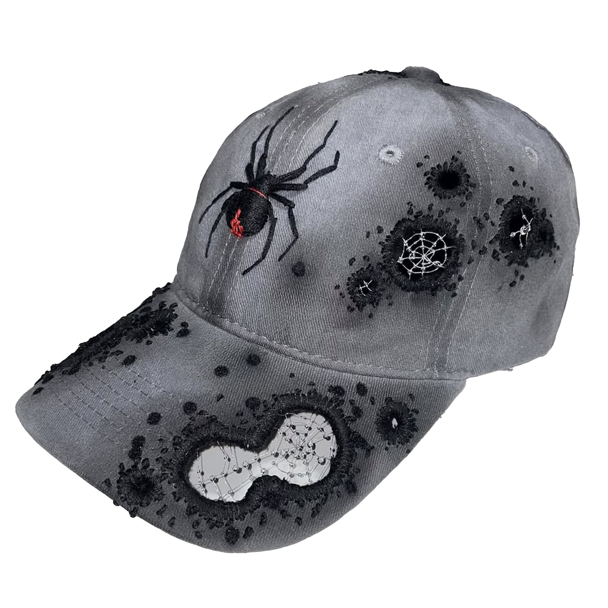 This Dark Deconstructed Spiderweb Distressed Baseball Cap combines edgy design with casual comfort. Featuring a unique spiderweb pattern with a deconstructed, distressed finish, it offers a bold, urban aesthetic. Crafted for durability and a comfortable fit, this cap is ideal for those seeking a distinctive accessory that complements streetwear and everyday outfits with an expert touch.