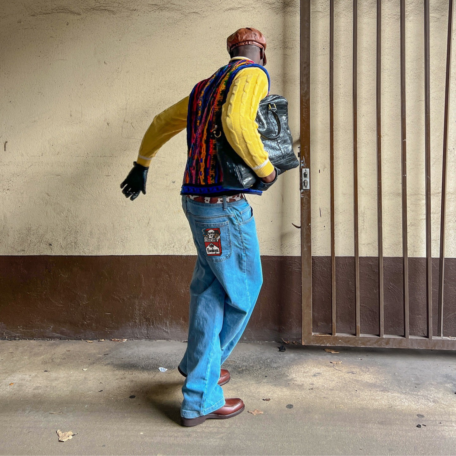 Add a bold twist to your denim game with our Embroidered Skeleton Cigarette Denim. Featuring a striking embroidered skeleton smoking from a cigarette box on the back pocket, this pair isn’t just jeans — it’s an attitude. Crafted from durable, high-quality denim and cut in a flattering wide-leg silhouette, it brings retro vibes with a rebellious edge.