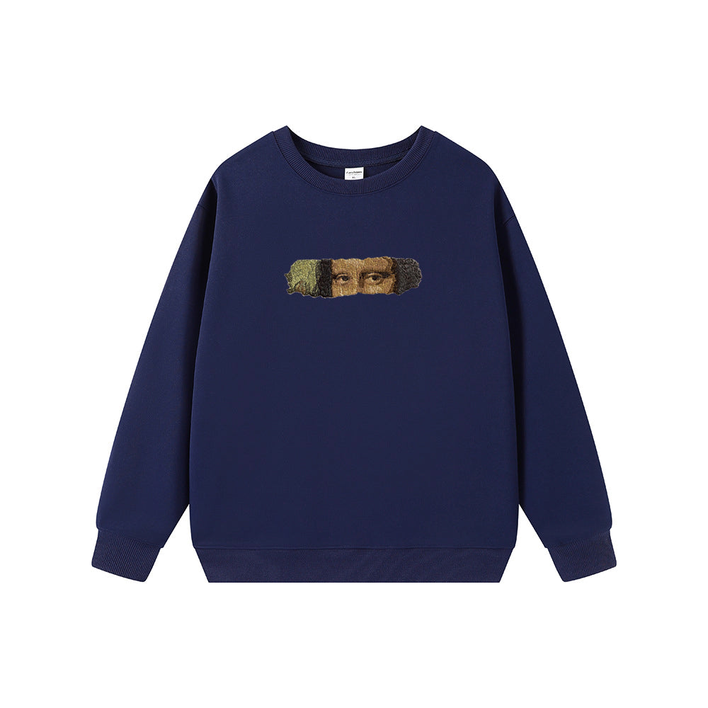 Elevate your wardrobe with the EVOKYN Embroidered Crew Neck Sweatshirt Mona Lisa. Crafted with precision, this sweatshirt features detailed embroidery of the iconic Mona Lisa, blending classic art with modern streetwear. Its premium fabric ensures comfort and durability, making it ideal for everyday wear while showcasing your refined taste in art-inspired fashion.