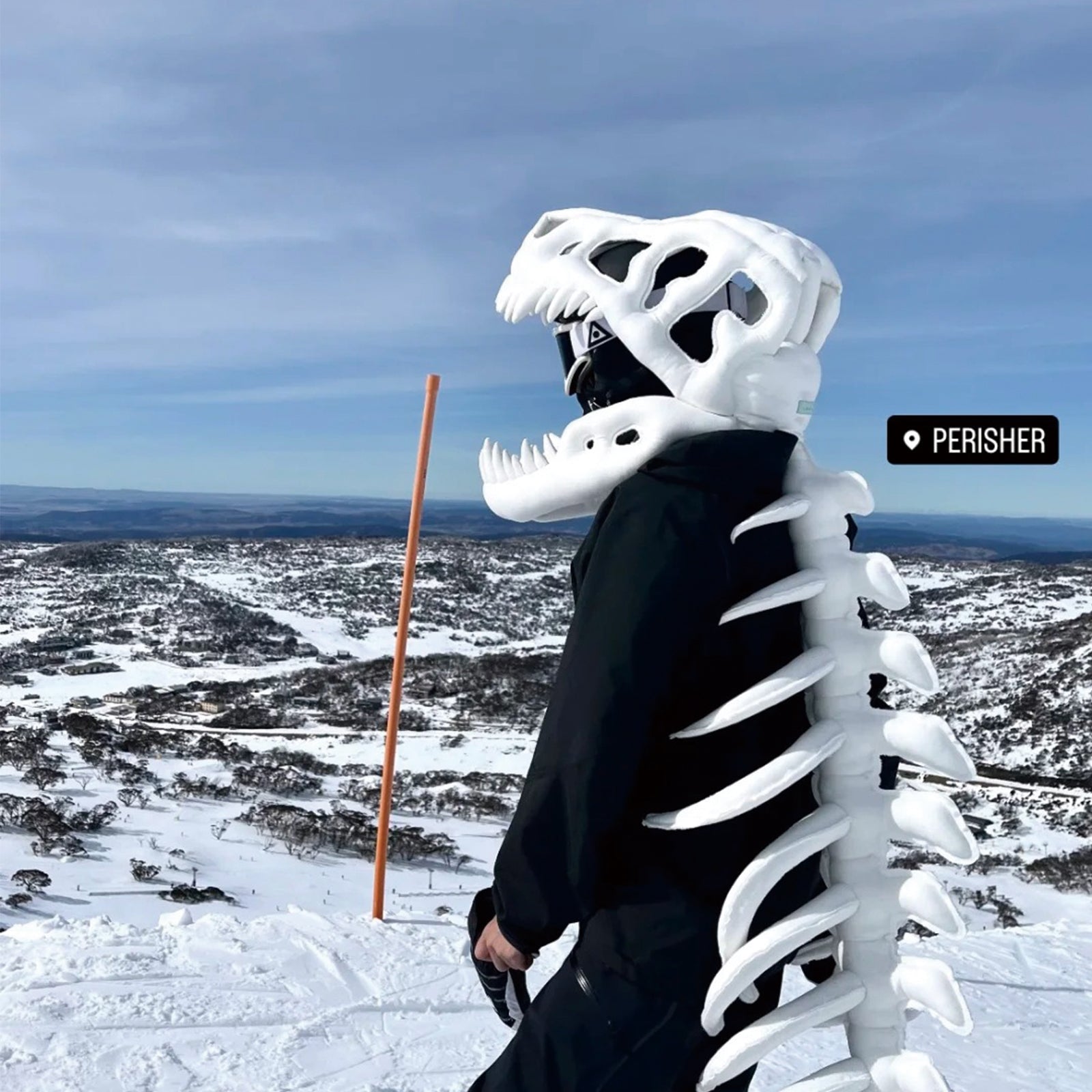 Featuring a soft yet realistic dinosaur skull helmet and extended rib-spine design, this creepy-cute outfit is perfect for cosplay, parties, pranks, or just standing out on social media. Made of plush material for comfort and easy wear, it combines scary skeleton vibes with a fun cartoonish twist.