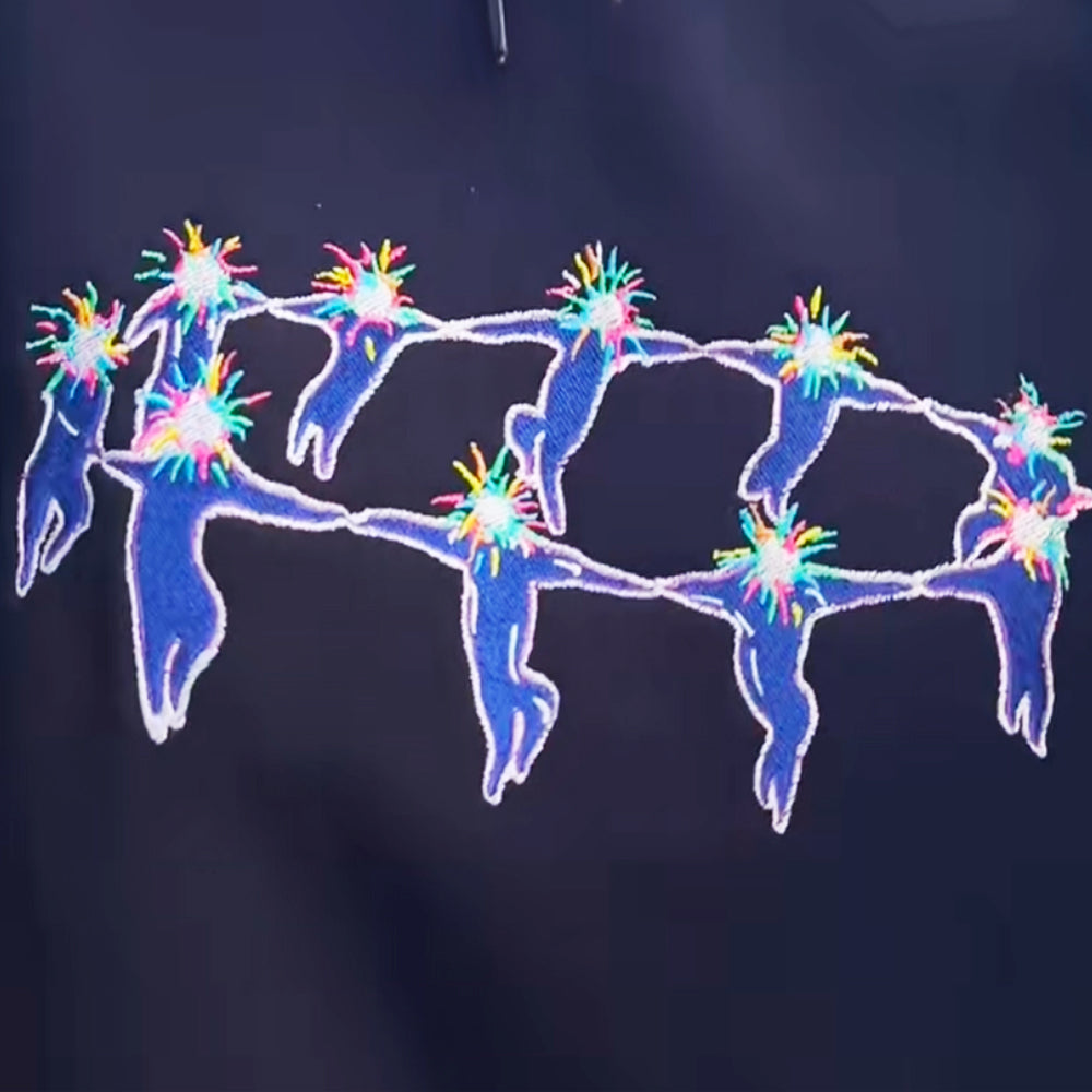 This hoodie features a finely embroidered spinning pattern of a little man, showcasing meticulous craftsmanship. Crafted from high-quality materials, it offers both comfort and durability. The unique design adds a subtle yet distinctive touch, making it an excellent choice for those who appreciate detailed artistry in their casual wear. Ideal for layering or standalone wear, this hoodie combines style with expert-level embroidery techniques.